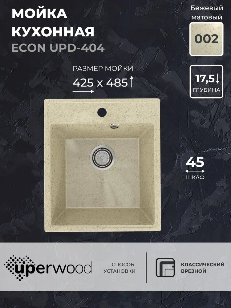Кухонная мойка из искусственного камня Uperwood ECON UPD-404-002, прямоугольная, бежевая матовая: сравнение цен, характеристики, фото, актуальное наличие и цены.