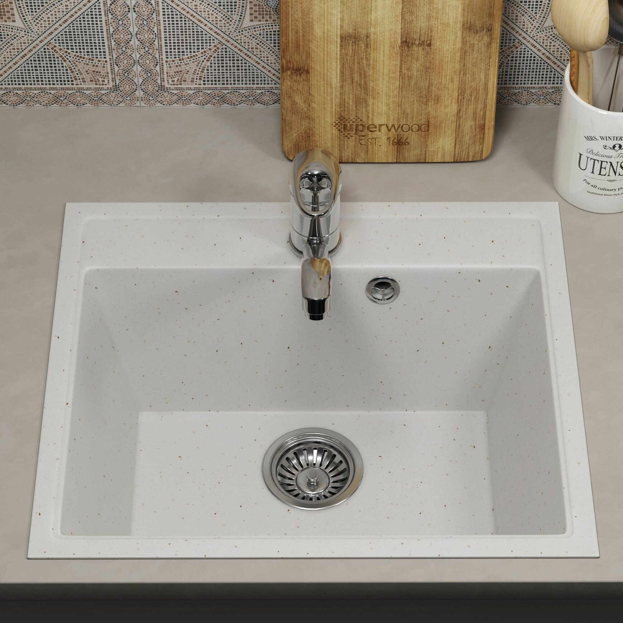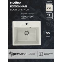 Купить Кухонная мойка из искусственного камня Uperwood ECON UPD-408-001, прямоугольная, белая матовая с доставкой по всей России.