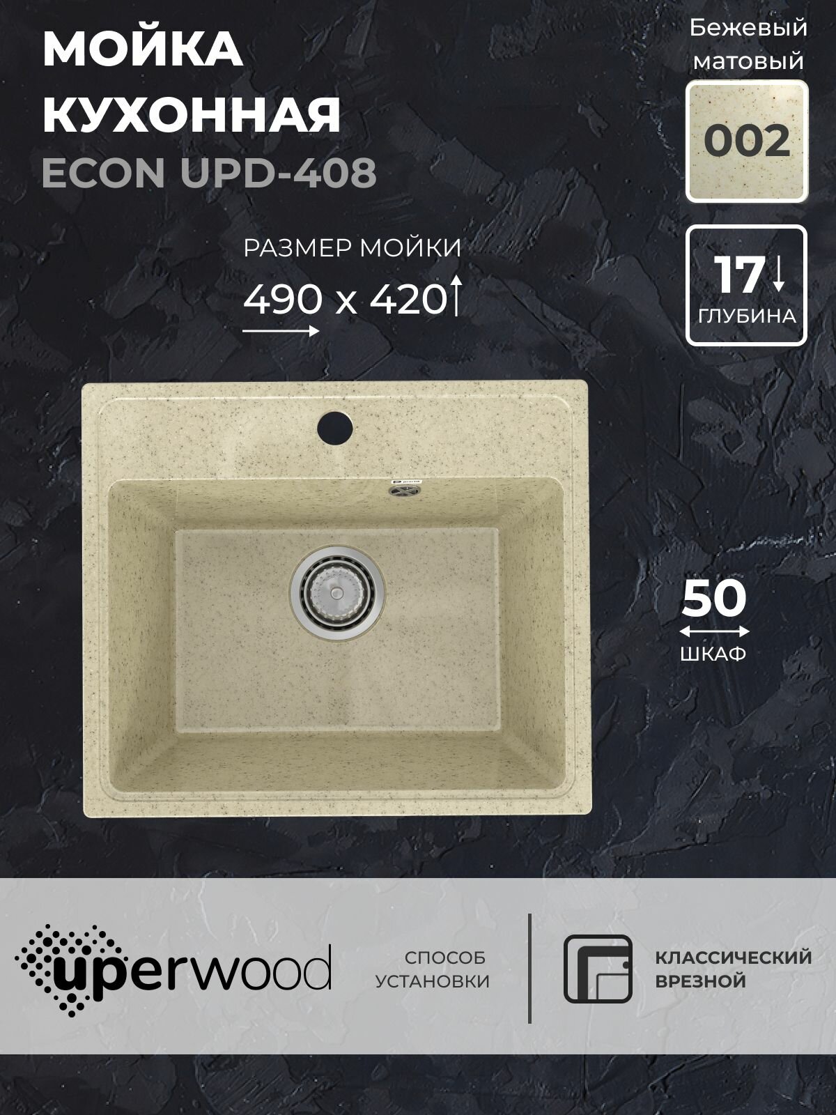 Кухонная мойка из искусственного камня Uperwood ECON UPD-408-002, прямоугольная, бежевая матовая: сравнение цен, характеристики, фото, актуальное наличие и цены.