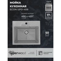 Кухонная мойка из искусственного камня Uperwood ECON UPD-408-003, прямоугольная, серая матовая: сравнение цен, характеристики, фото, актуальное наличие и цены.