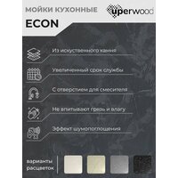 Кухонная мойка из искусственного камня Uperwood ECON UPD-408-004, прямоугольная, черная матовая: сравнение цен, характеристики, фото, актуальное наличие и цены.