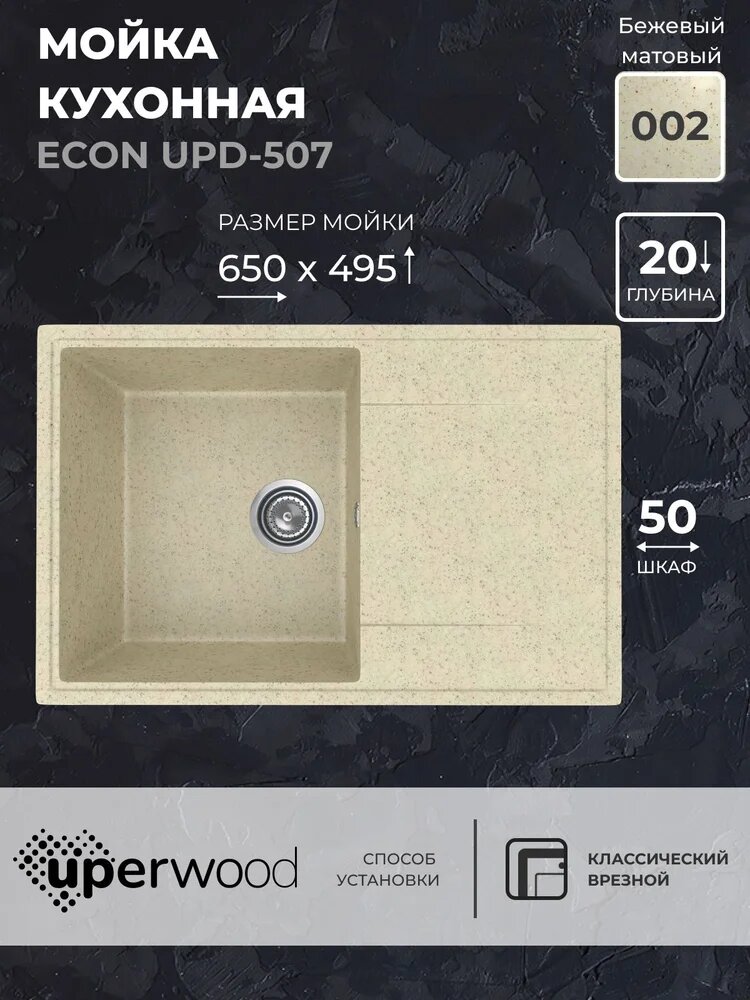 Кухонная мойка из искусственного камня Uperwood ECON UPD-507-002, прямоугольная, бежевая матовая: сравнение цен, характеристики, фото, актуальное наличие и цены.