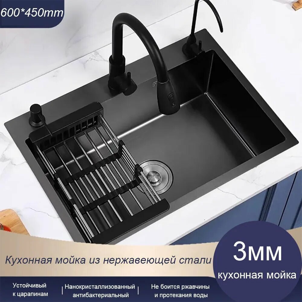Кухонная мойка из нержавеющей стали, 60×45 см, /Sinks-one/черный комплект С выдвижным краном: сравнение цен, характеристики, фото, актуальное наличие и цены.