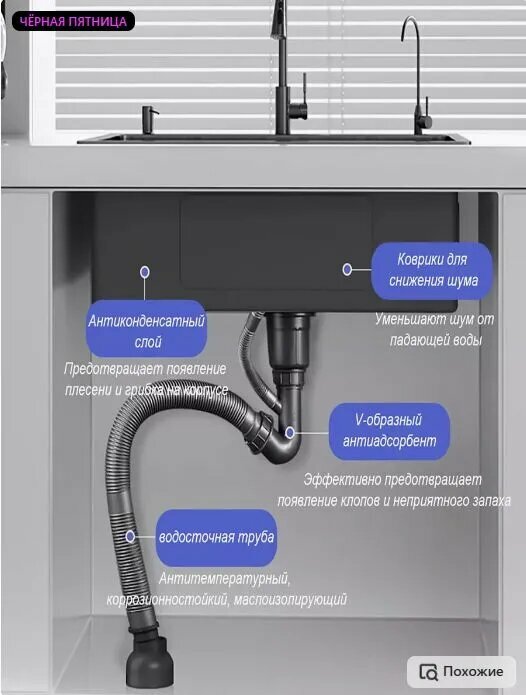 Кухонная мойка из нержавеющей стали, 60×45 см, /Sinks-one/черный комплект С выдвижным краном: сравнение цен, характеристики, фото, актуальное наличие и цены.