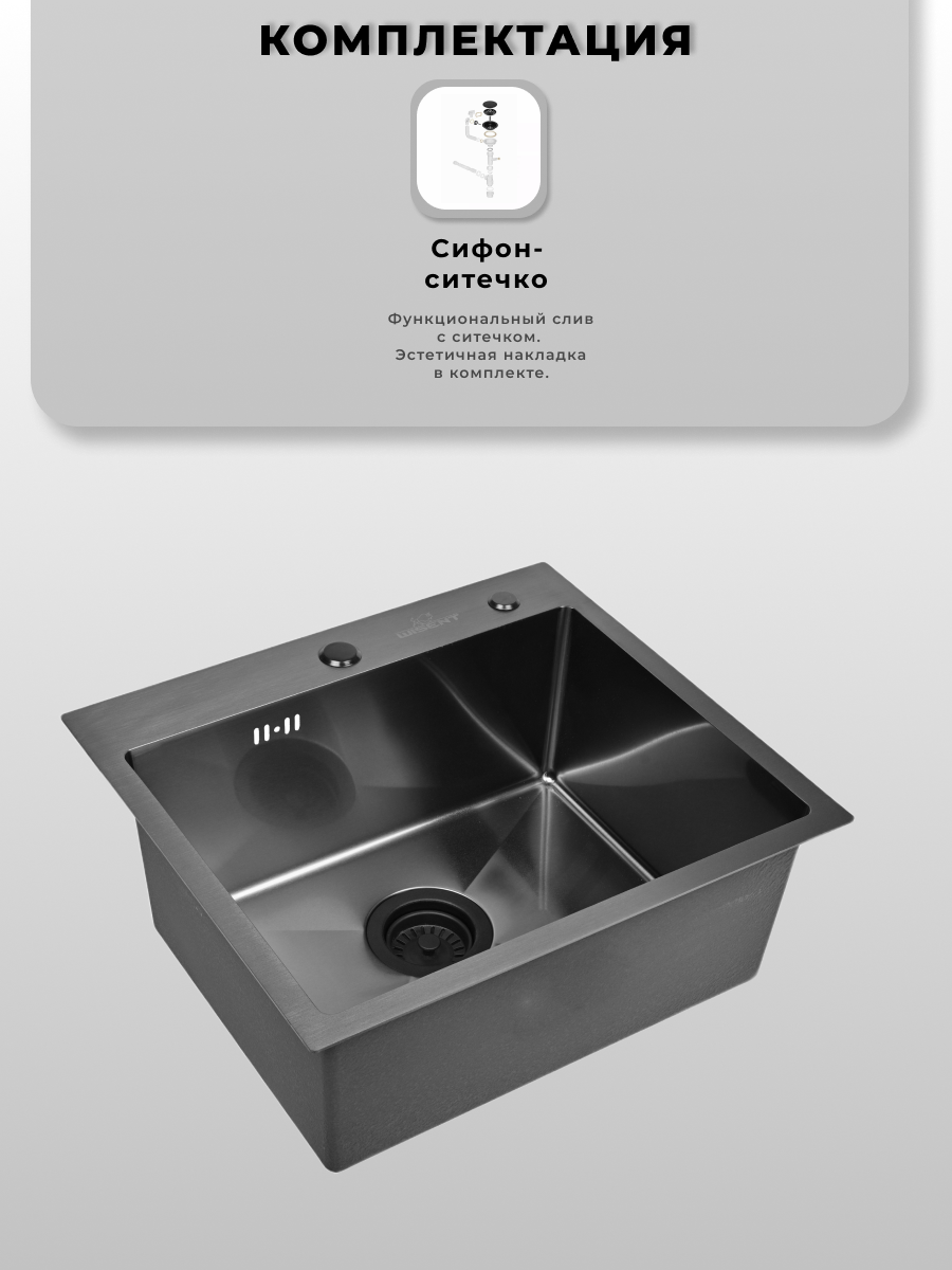 Купить Мойка для кухни нержавеющая 58х48, с PVD покрытием графит. Сифон с ситечком. с доставкой по всей России. Мойка для кухни нержавеющая 58х48, с PVD покрытием графит. Сифон с ситечком.: сравнение цен, характеристики, фото, актуальное наличие и цены.