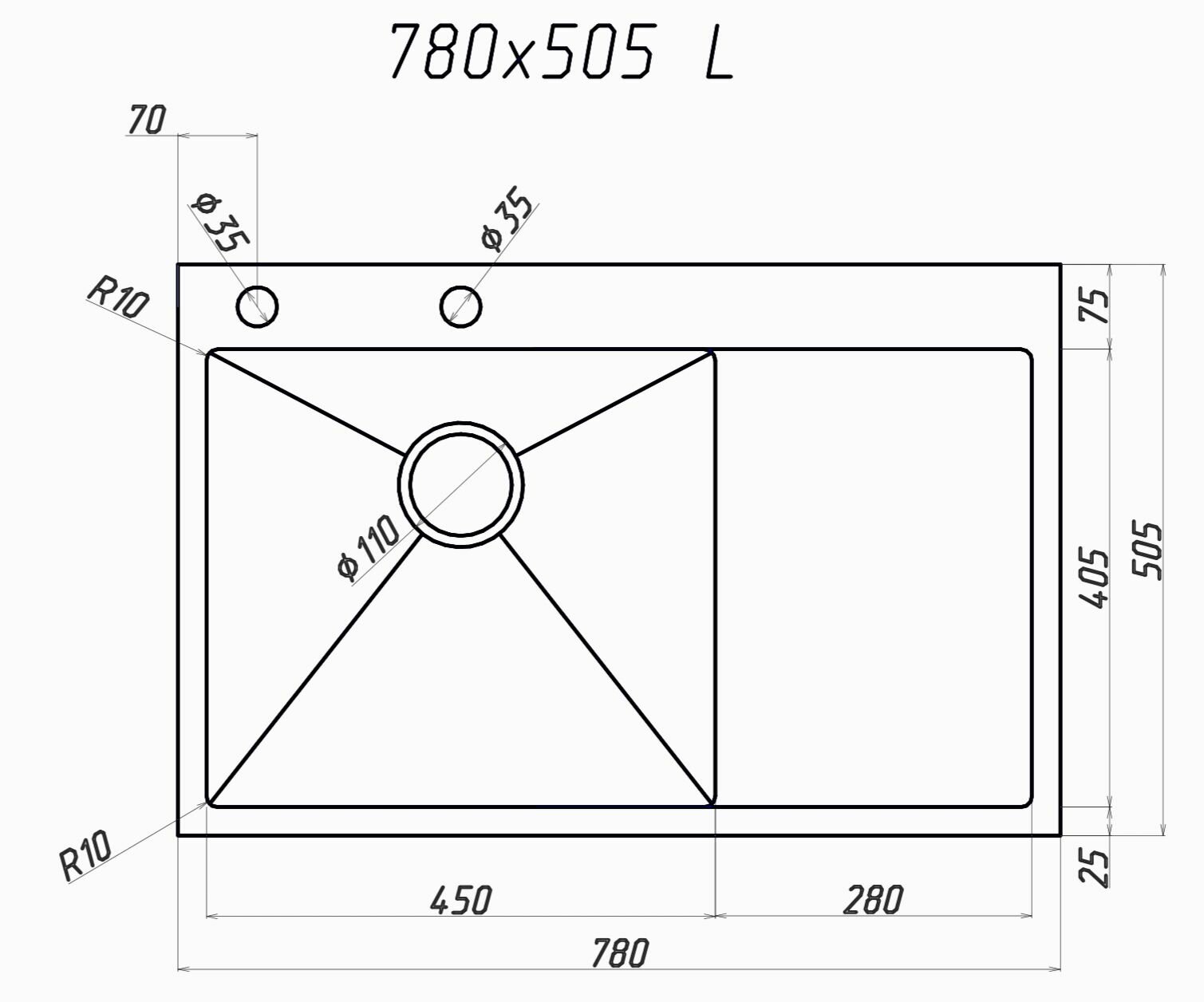 Купить Кухонная мойка из нержавеющей стали «VANS» 780*505*200 мм Satin-L с доставкой по всей России.