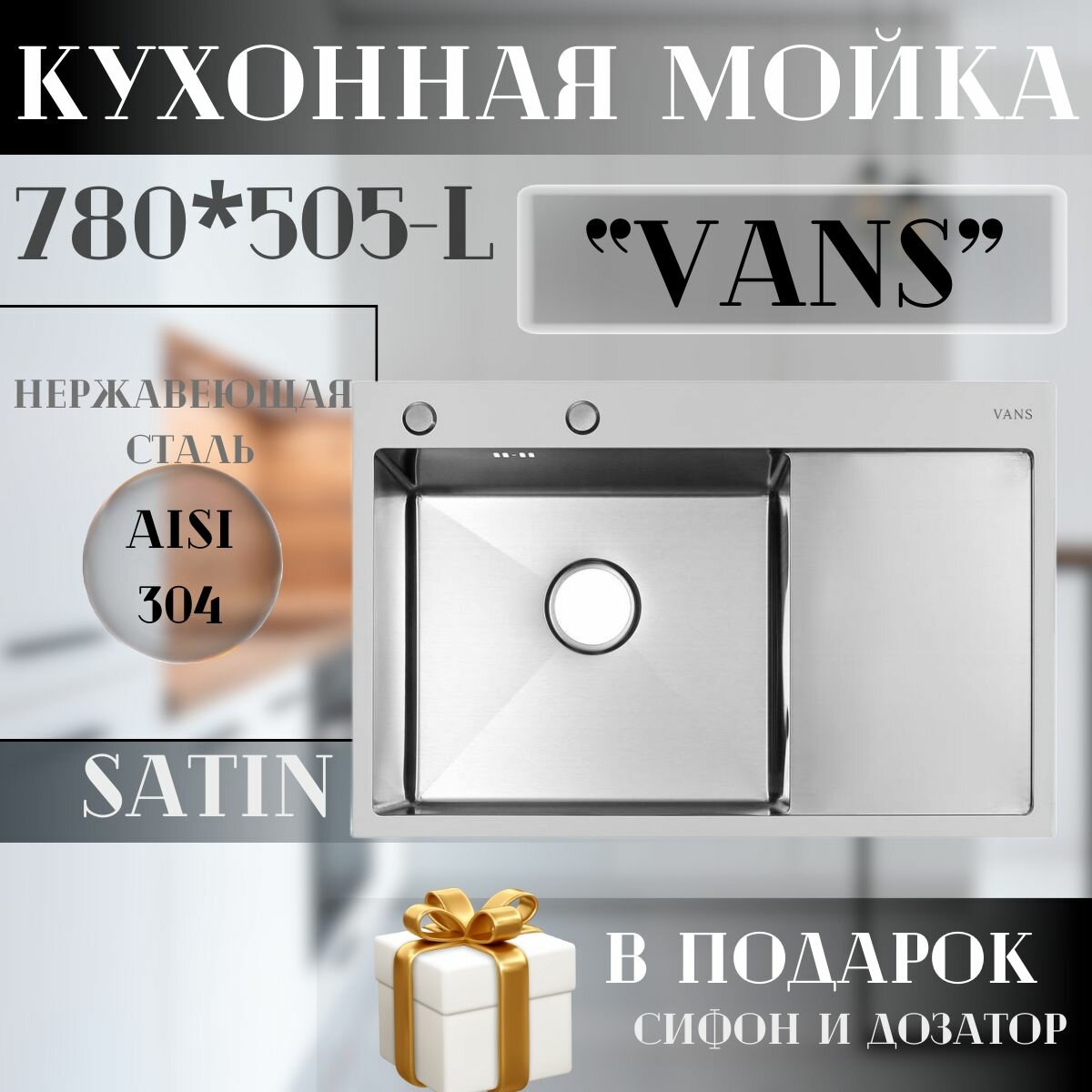 Кухонная мойка из нержавеющей стали «VANS» 780*505*200 мм Satin-L: сравнение цен, характеристики, фото, актуальное наличие и цены.