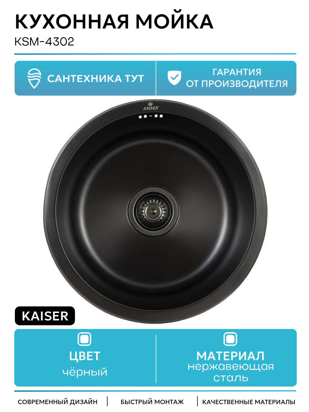Купить Кухонная мойка Kaiser KSM-4302 Black Grafit, современный стиль с доставкой по всей России. Кухонная мойка Kaiser KSM-4302 Black Grafit, современный стиль: сравнение цен, характеристики, фото, актуальное наличие и цены.