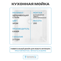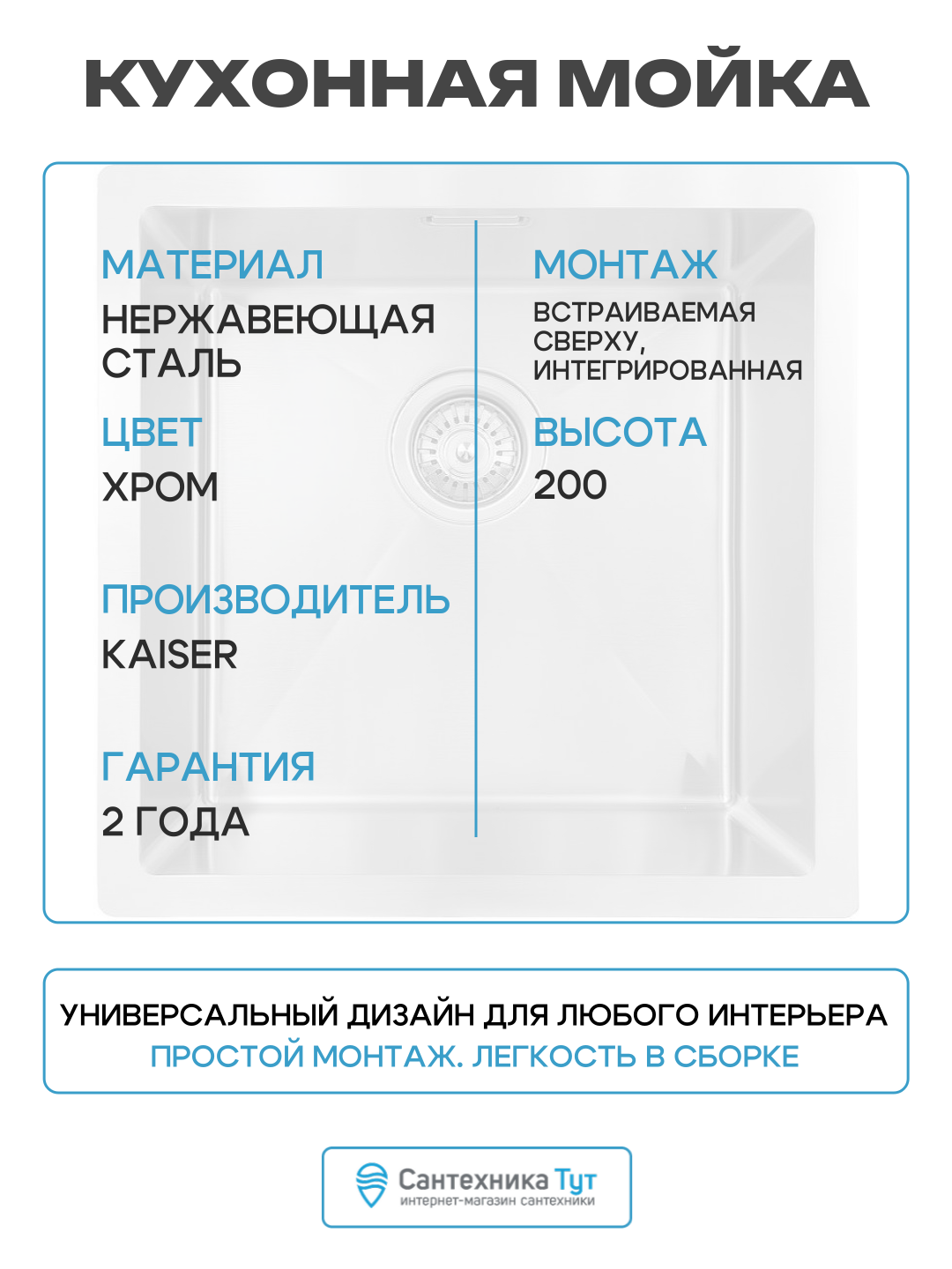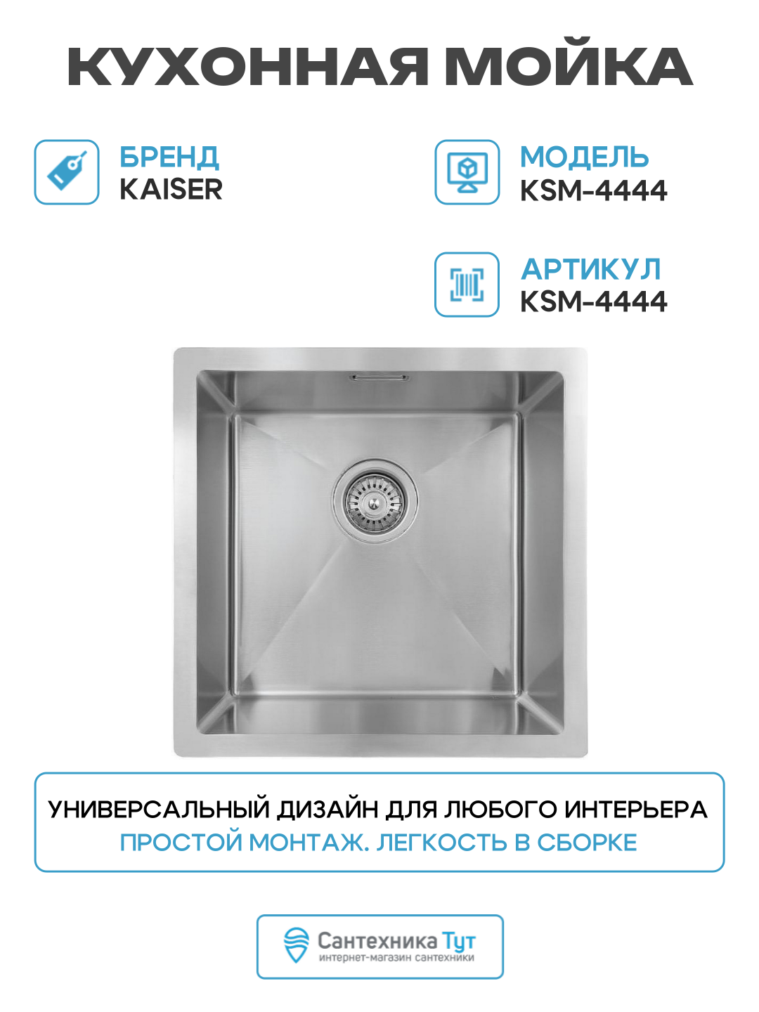 Кухонная мойка Kaiser KSM-4444 Silver, современный стиль, надежное качество: сравнение цен, характеристики, фото, актуальное наличие и цены.