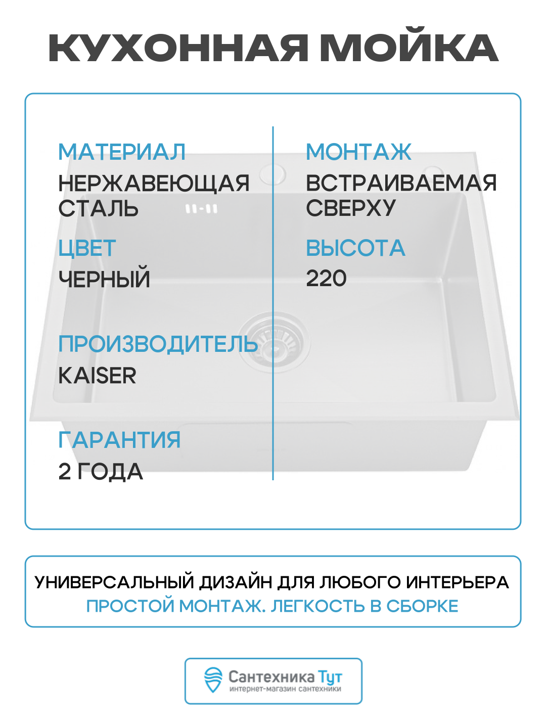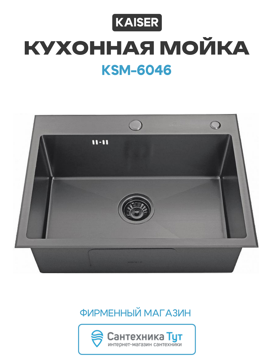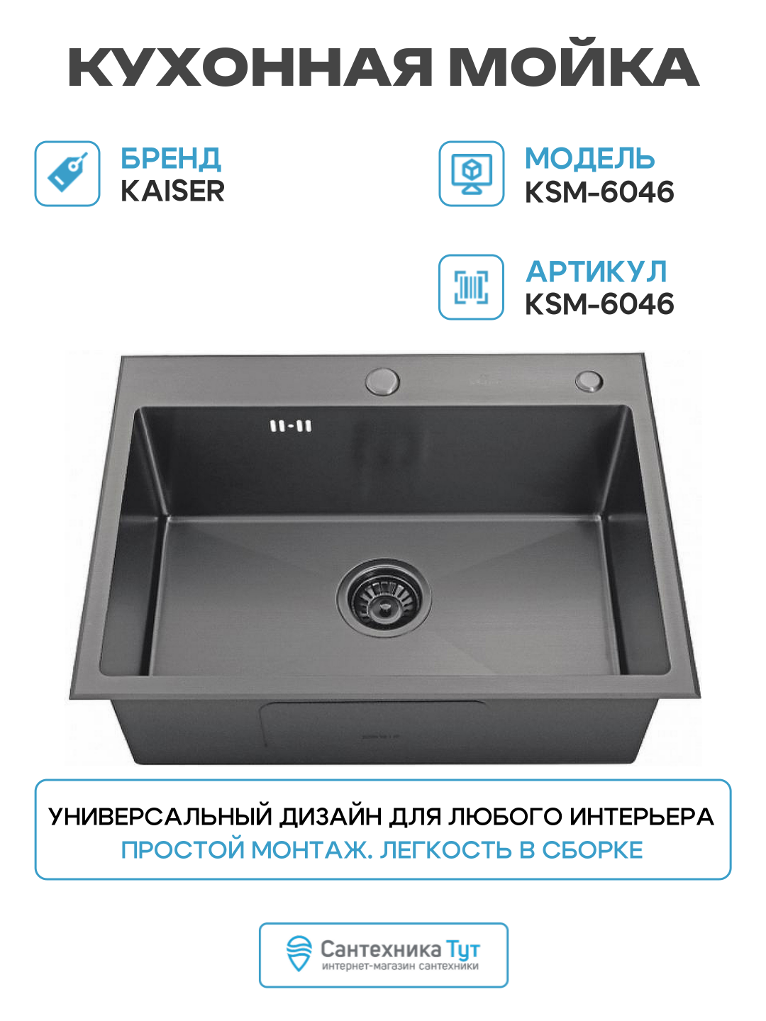Кухонная мойка Kaiser KSM-6046 Black, современный стиль, надежное качество: сравнение цен, характеристики, фото, актуальное наличие и цены.