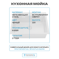 Купить Кухонная мойка Kaiser KSM-6046 Black, современный стиль, надежное качество с доставкой по всей России.