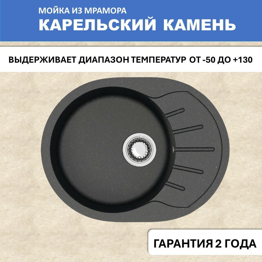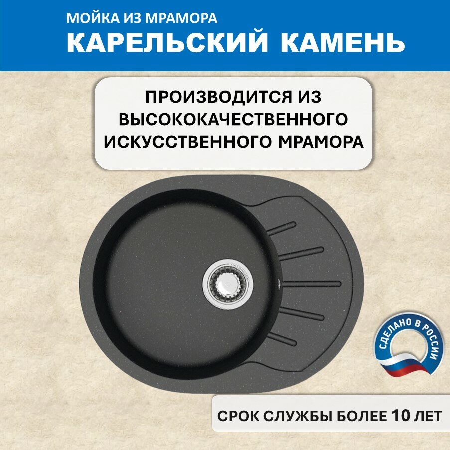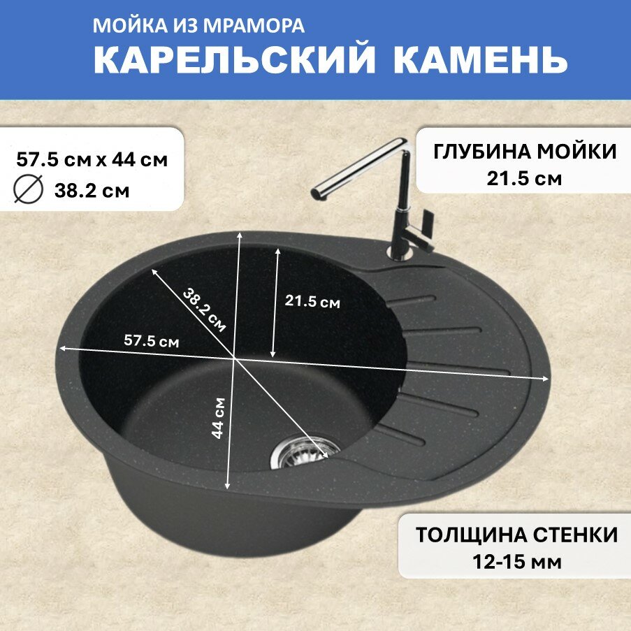 Кухонная мойка Карельский камень модель 10 (575*440) Q4 Черный - это стильное и функциональное решение для вашей кухни. Изготовленная из искусственного мрамора, она обеспечивает долговечность и прочность, а также придает вашей кухне современный и элегантный вид.