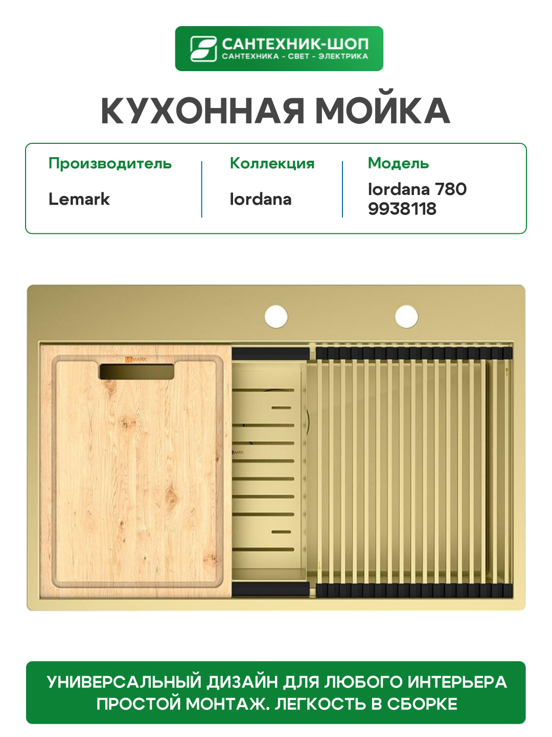 Купить Кухонная мойка Lemark Iordana 780 9938118 цвет Светлое золото с доставкой по всей России. Кухонная мойка Lemark Iordana 780 9938118 цвет Светлое золото: сравнение цен, характеристики, фото, актуальное наличие и цены.