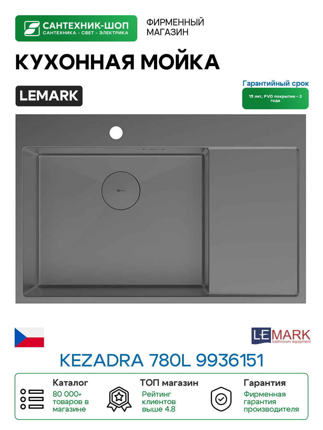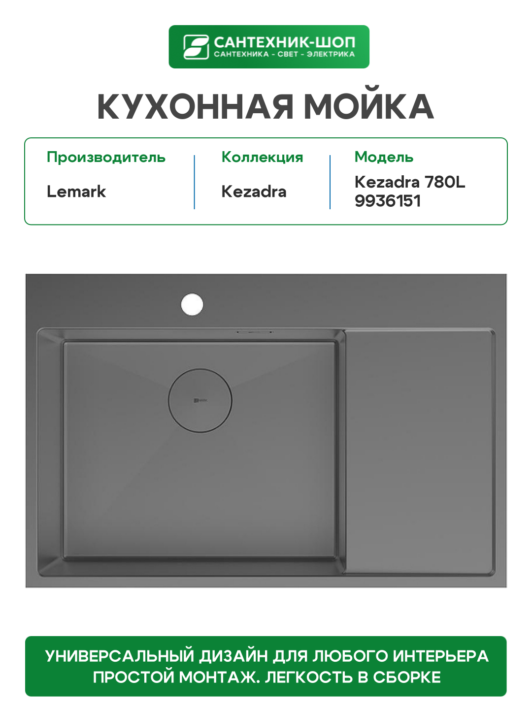 Купить Кухонная мойка Lemark Kezadra 780L 9936151 цвет Графит с доставкой по всей России. Кухонная мойка Lemark Kezadra 780L 9936151 цвет Графит: сравнение цен, характеристики, фото, актуальное наличие и цены.