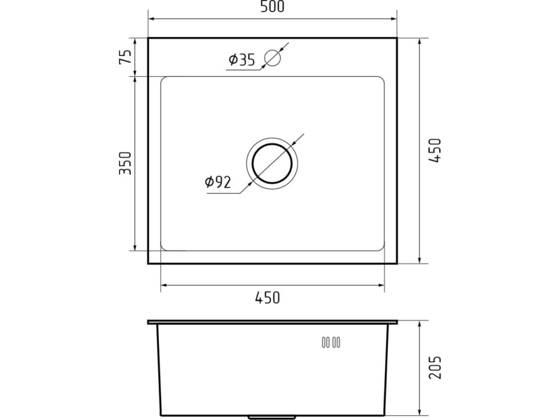 Кухонная мойка METAL 5045 PVD графит 1 чаша 450*350*205, монтаж: врезной, материал: нержавеющая сталь, цвет: графит