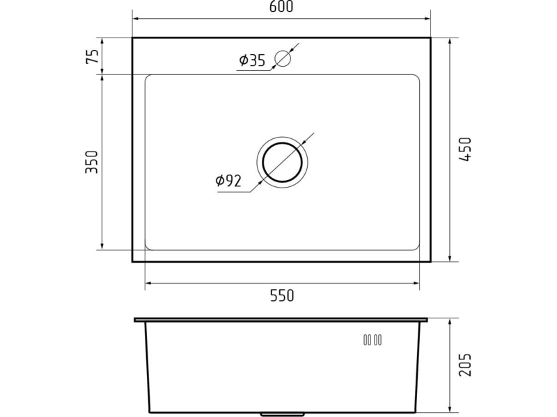 Кухонная мойка METAL 6045 PVD графит 1 чаша 550*350*205, монтаж: врезной, материал: нержавеющая сталь, цвет: графит