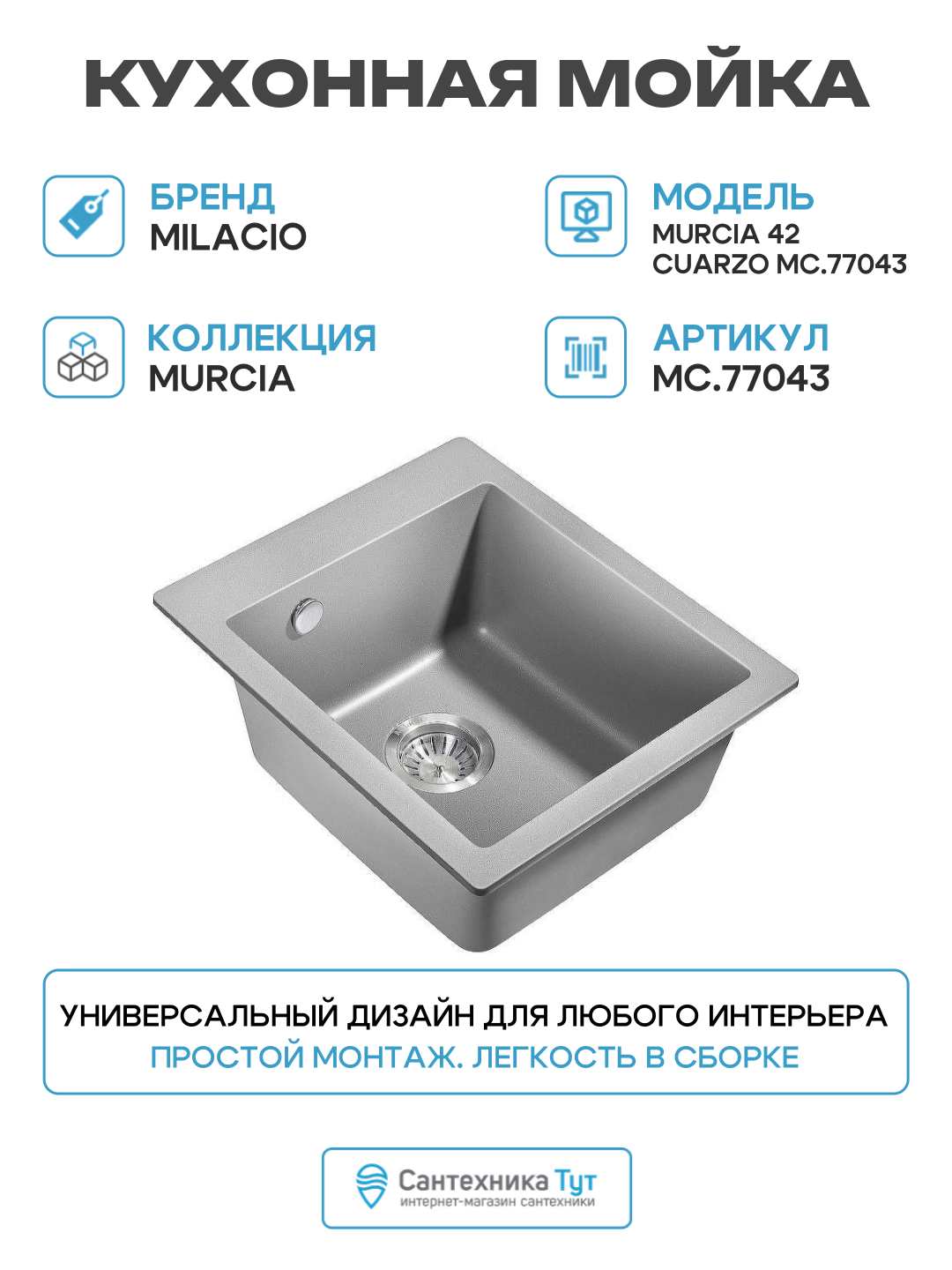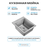 Кухонная мойка Milacio Murcia 42 Cuarzo MC.77043 Серый металлик искусственный камень встраиваемый 41.5: сравнение цен, характеристики, фото, актуальное наличие и цены.