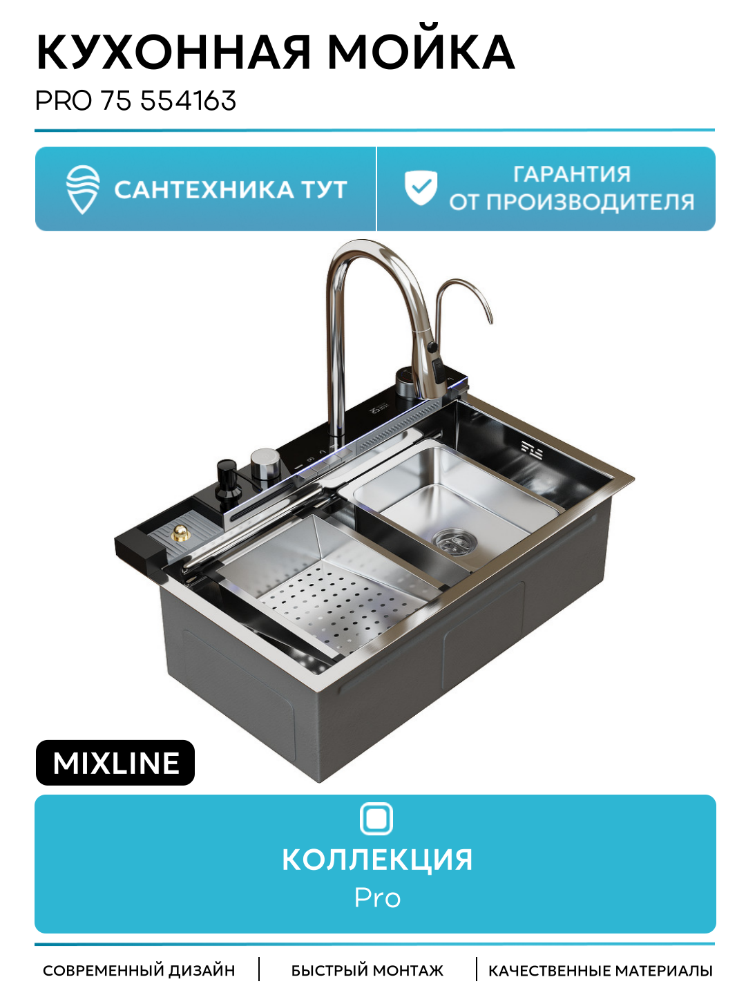 Купить Кухонная мойка Mixline Pro 75 554163 цвет Сатин, качество и надежность с доставкой по всей России. Кухонная мойка Mixline Pro 75 554163 цвет Сатин, качество и надежность: сравнение цен, характеристики, фото, актуальное наличие и цены.