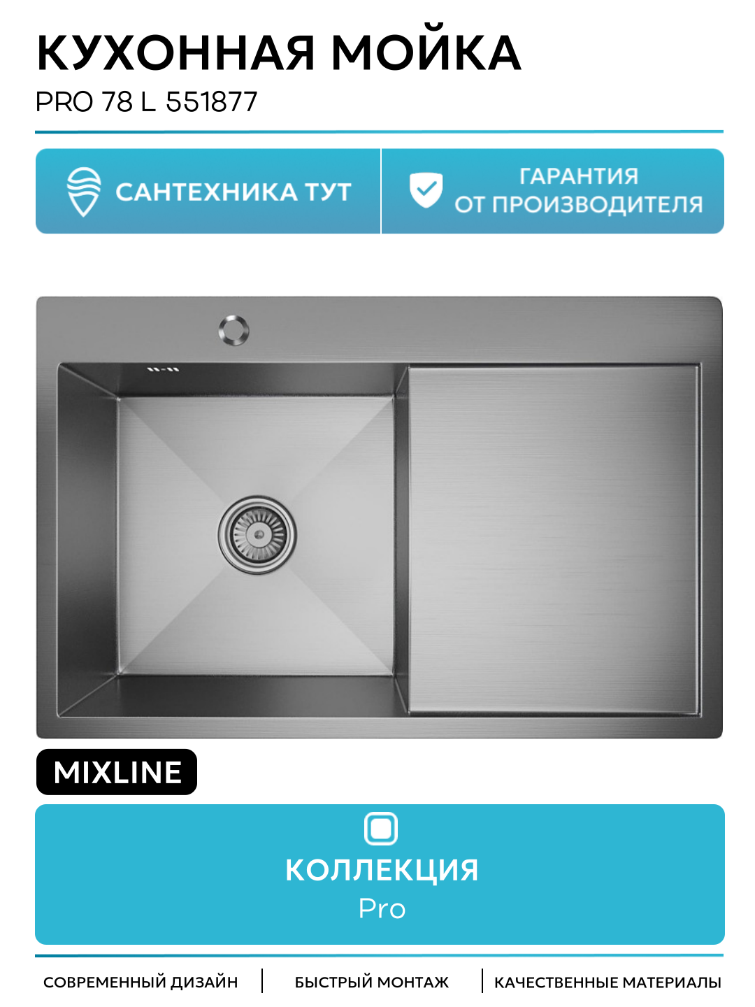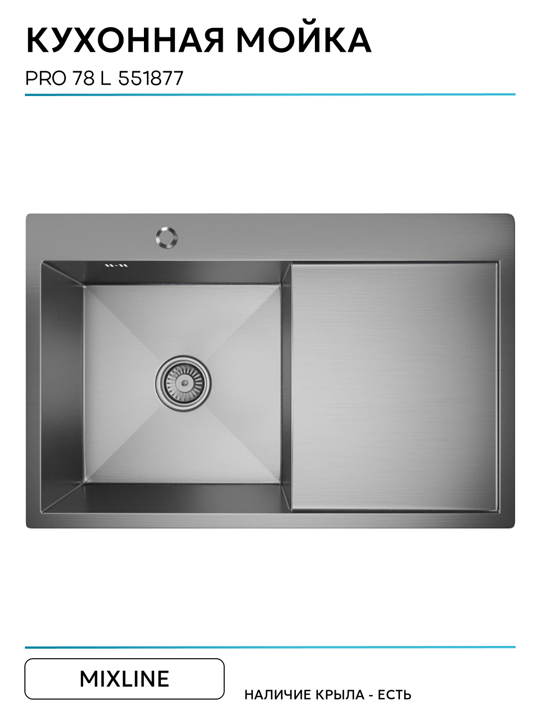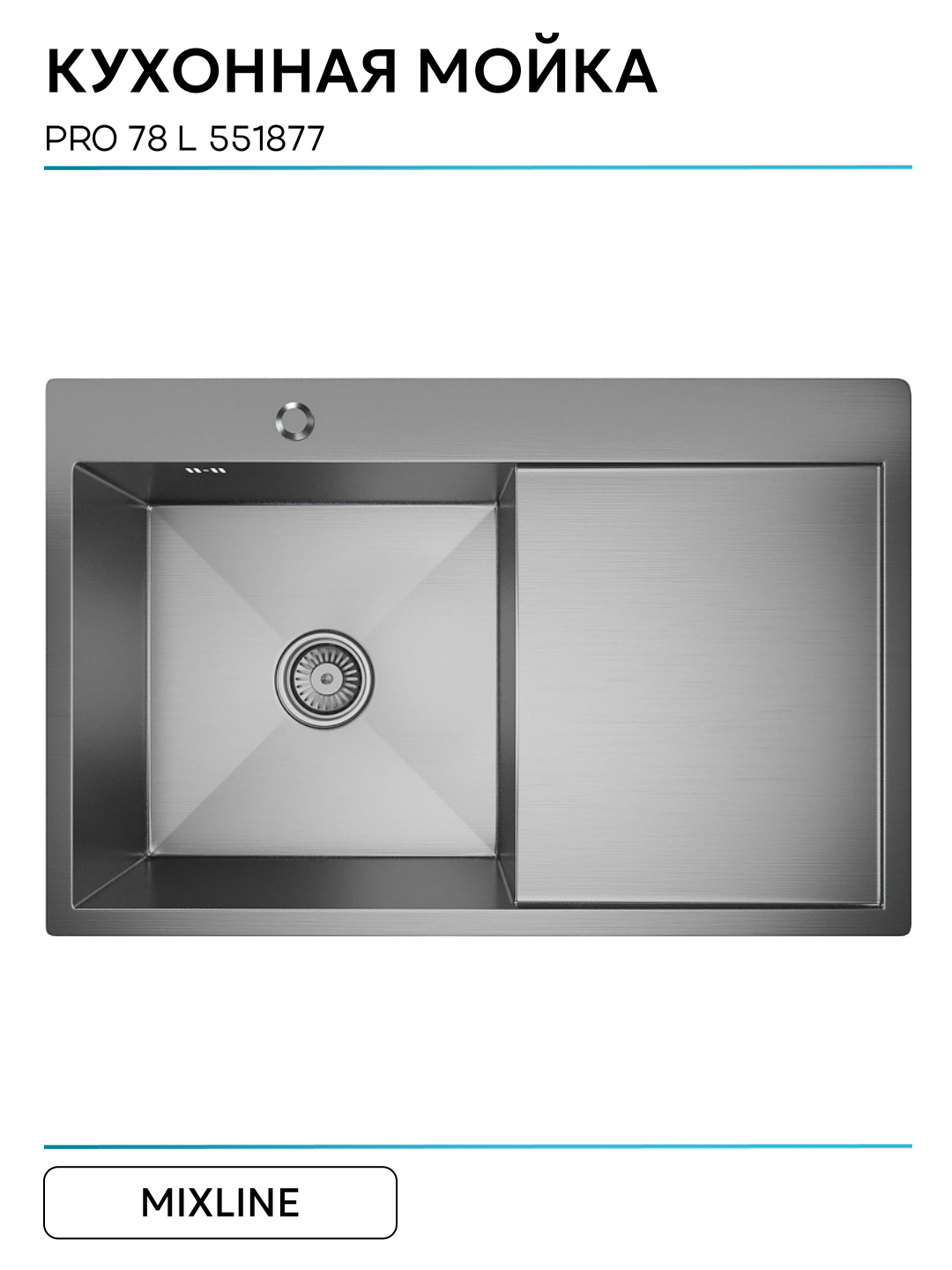 Купить Кухонная мойка Mixline Pro 78 L 551877 цвет Сатин, современный стиль с доставкой по всей России. Кухонная мойка Mixline Pro 78 L 551877 цвет Сатин, современный стиль: сравнение цен, характеристики, фото, актуальное наличие и цены.