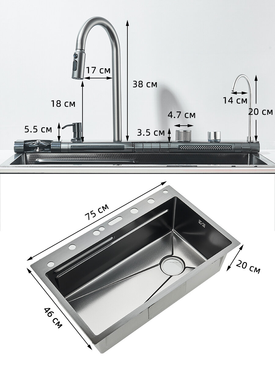 Купить Кухонная мойка многофункциональная с регулирующимися водопадами (смеситель в комплекте) 75×46см с доставкой по всей России. Кухонная мойка многофункциональная с регулирующимися водопадами (смеситель в комплекте) 75×46см: сравнение цен, характеристики, фото, актуальное наличие и цены.