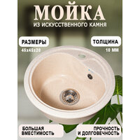 Купить Кухонная мойка мраморная GranAlliance G-13 Бежевая матовая круглая D-446 мм без сифона с доставкой по всей России.