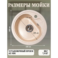 Кухонная мойка мраморная GranAlliance G-13 Бежевая матовая круглая D-446 мм без сифона: сравнение цен, характеристики, фото, актуальное наличие и цены.