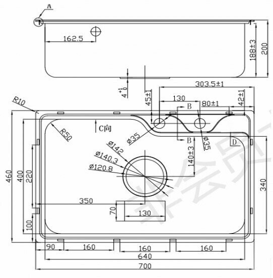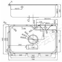 Основные характеристики: Тип: мойка Тип мойки: одна чаша Назначение: для кухни Исполнение: моноблок Способ монтажа: врезной Толщина стали: 0.8 мм Размеры мойки: 700х460 мм Размеры чаши: 640х340 мм Глубина чаши: 200 мм Вырез под мойку: 680х440 мм Размер чаши слива: 140 мм Размер сливного отверстия: 90 мм В модуль: 800 мм Поверхность: сатиновая Материал: нержавеющая сталь Цвет: сатин