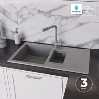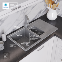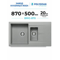 Купить Мойка для кухни каменная POLYGRAN BRIG-870, Серая, Врезная, Квадратная, С крылом, 2 чаши (Серый №14) с доставкой по всей России.