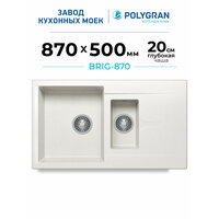 Мойка для кухни каменная POLYGRAN BRIG-870, Белая, Врезная, Квадратная, С крылом, 2 чаши (Белый хлопок): сравнение цен, характеристики, фото, актуальное наличие и цены.