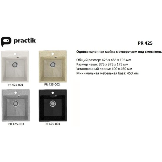 Купить Кухонная мойка Practik PR-M-425-001 (без сифона), белый камень с доставкой по всей России. Кухонная мойка Practik PR-M-425-001 (без сифона), белый камень: сравнение цен, характеристики, фото, актуальное наличие и цены.
