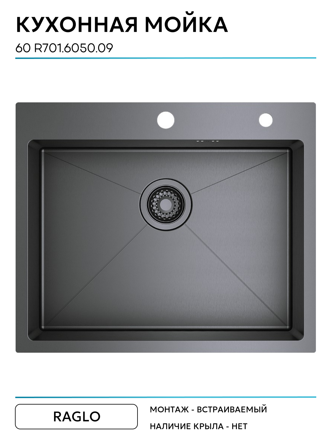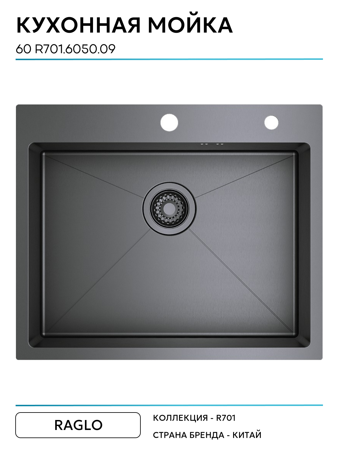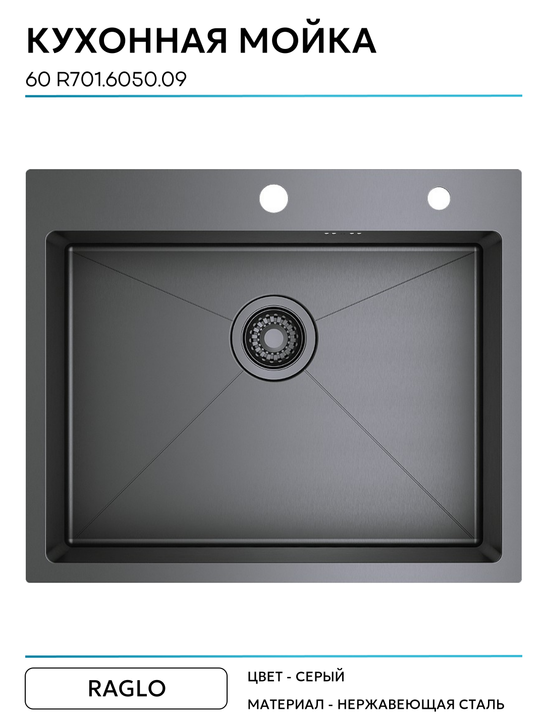 Кухонная мойка Raglo 60 R701.6050.09 Графит матовый нержавеющая сталь встраиваемый 60 Китай: сравнение цен, характеристики, фото, актуальное наличие и цены.