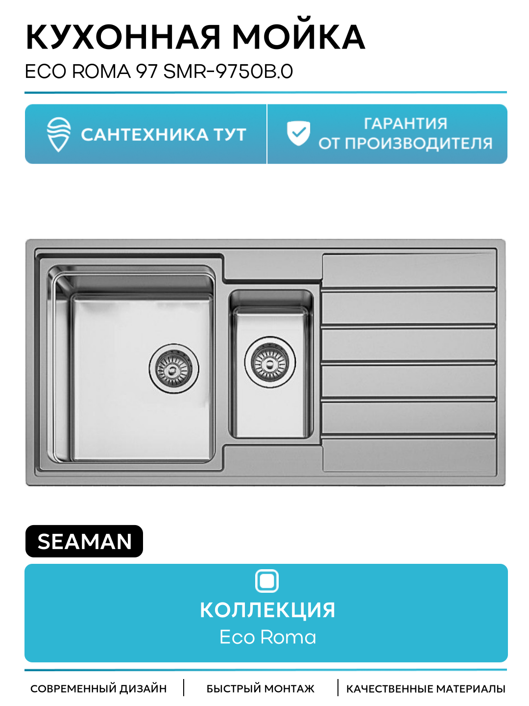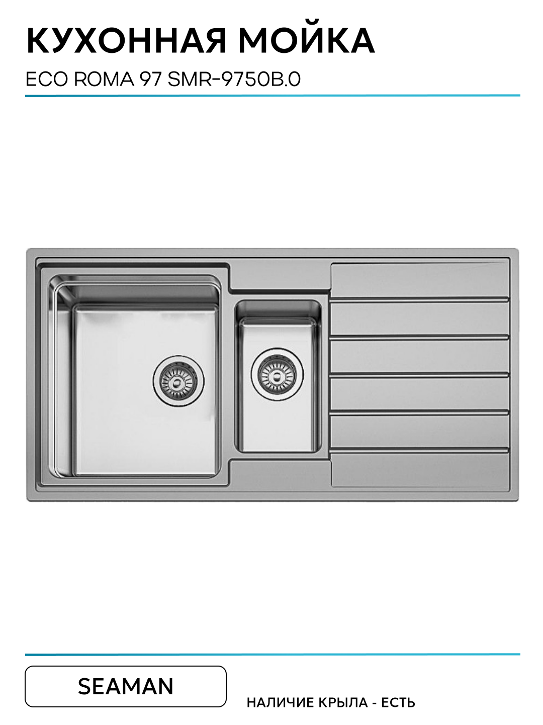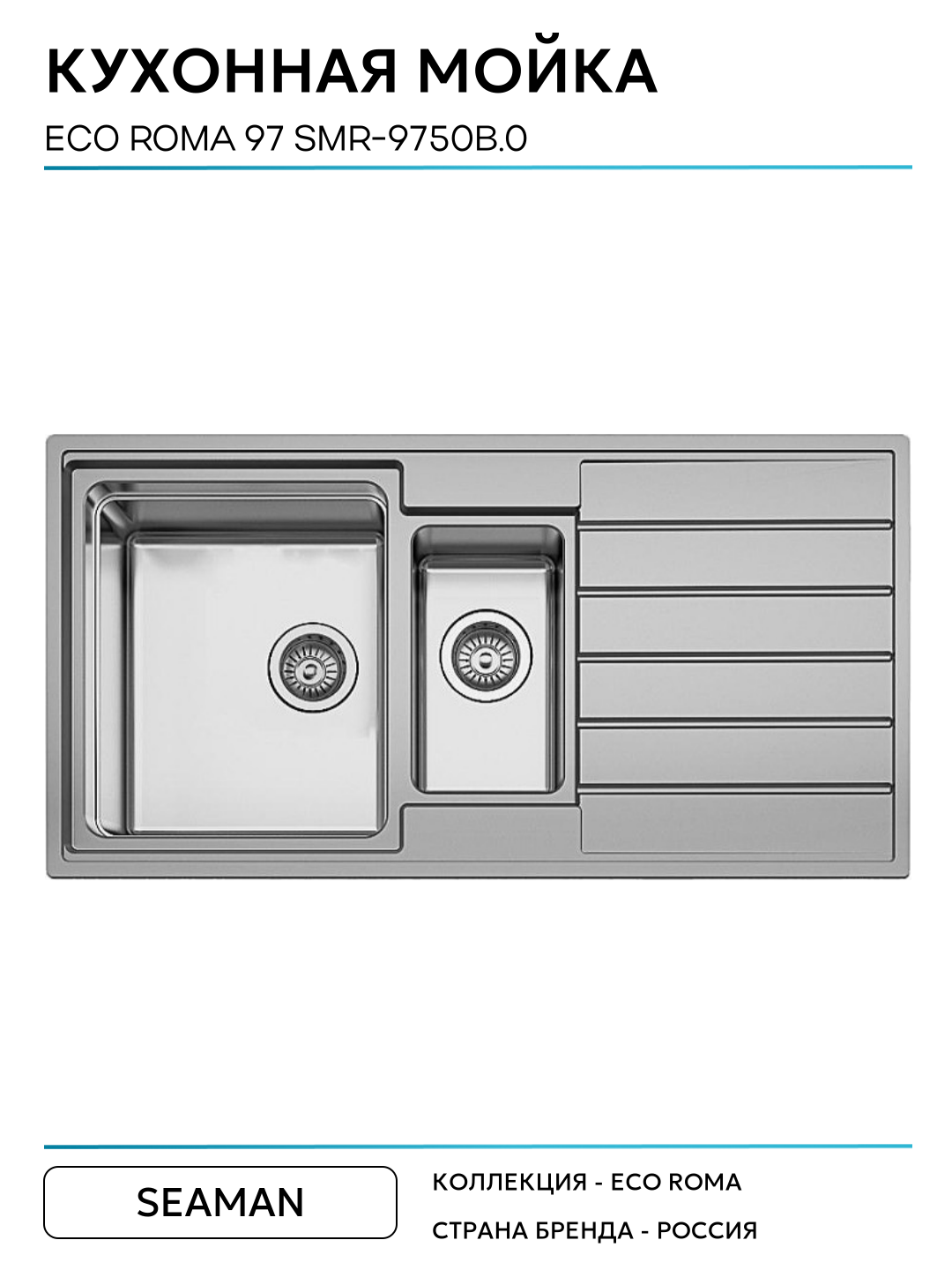 Купить Кухонная мойка Seaman Eco Roma 97 SMR-9750B.0 цвет Нержавеющая сталь с доставкой по всей России. Кухонная мойка Seaman Eco Roma 97 SMR-9750B.0 цвет Нержавеющая сталь: сравнение цен, характеристики, фото, актуальное наличие и цены.