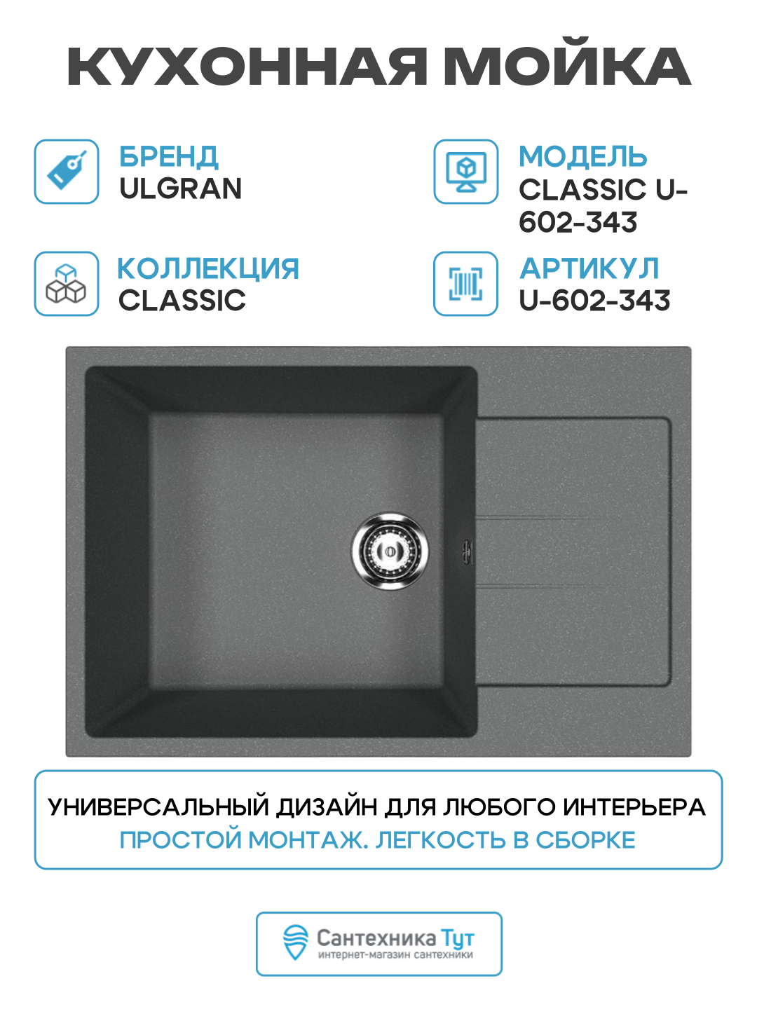 Купить Кухонная мойка Ulgran Classic U-602-343 цвет Антрацит Прямоугольная Встраиваемый сверху с доставкой по всей России. Кухонная мойка Ulgran Classic U-602-343 цвет Антрацит Прямоугольная Встраиваемый сверху: сравнение цен, характеристики, фото, актуальное наличие и цены.