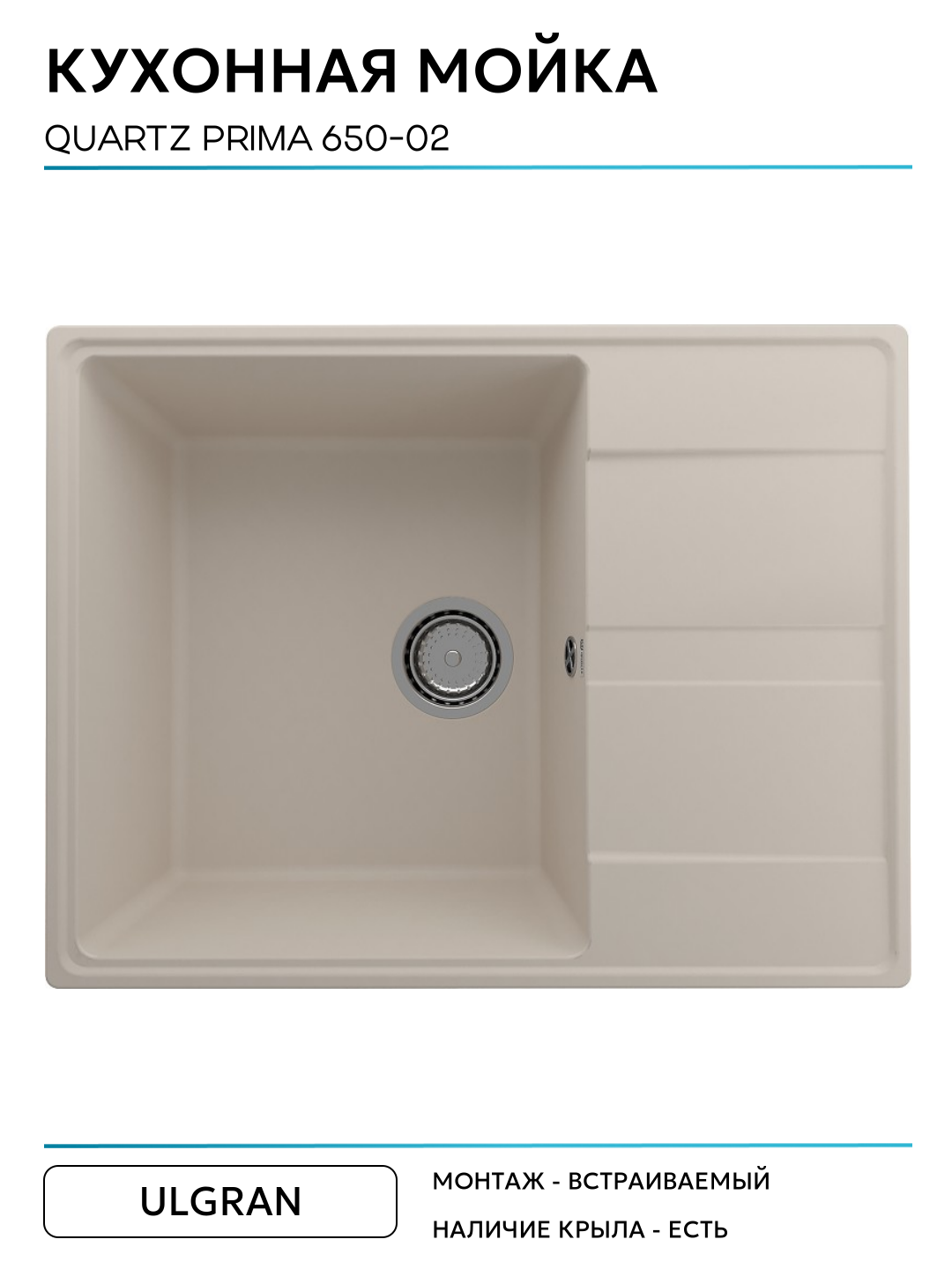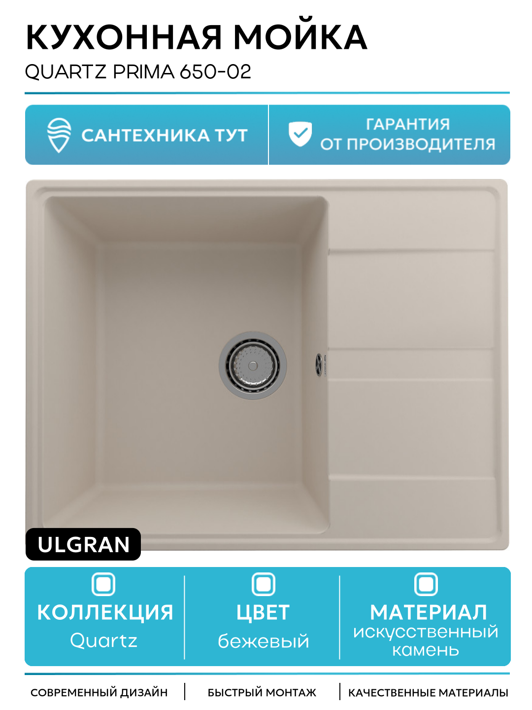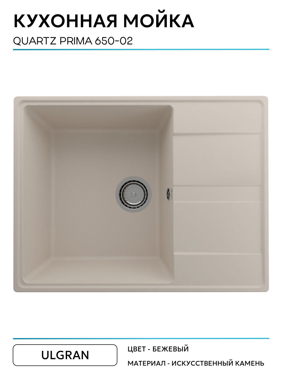 Кухонная мойка Ulgran Quartz Prima 650-02 Лен искусственный камень встраиваемый 65 Россия: сравнение цен, характеристики, фото, актуальное наличие и цены.
