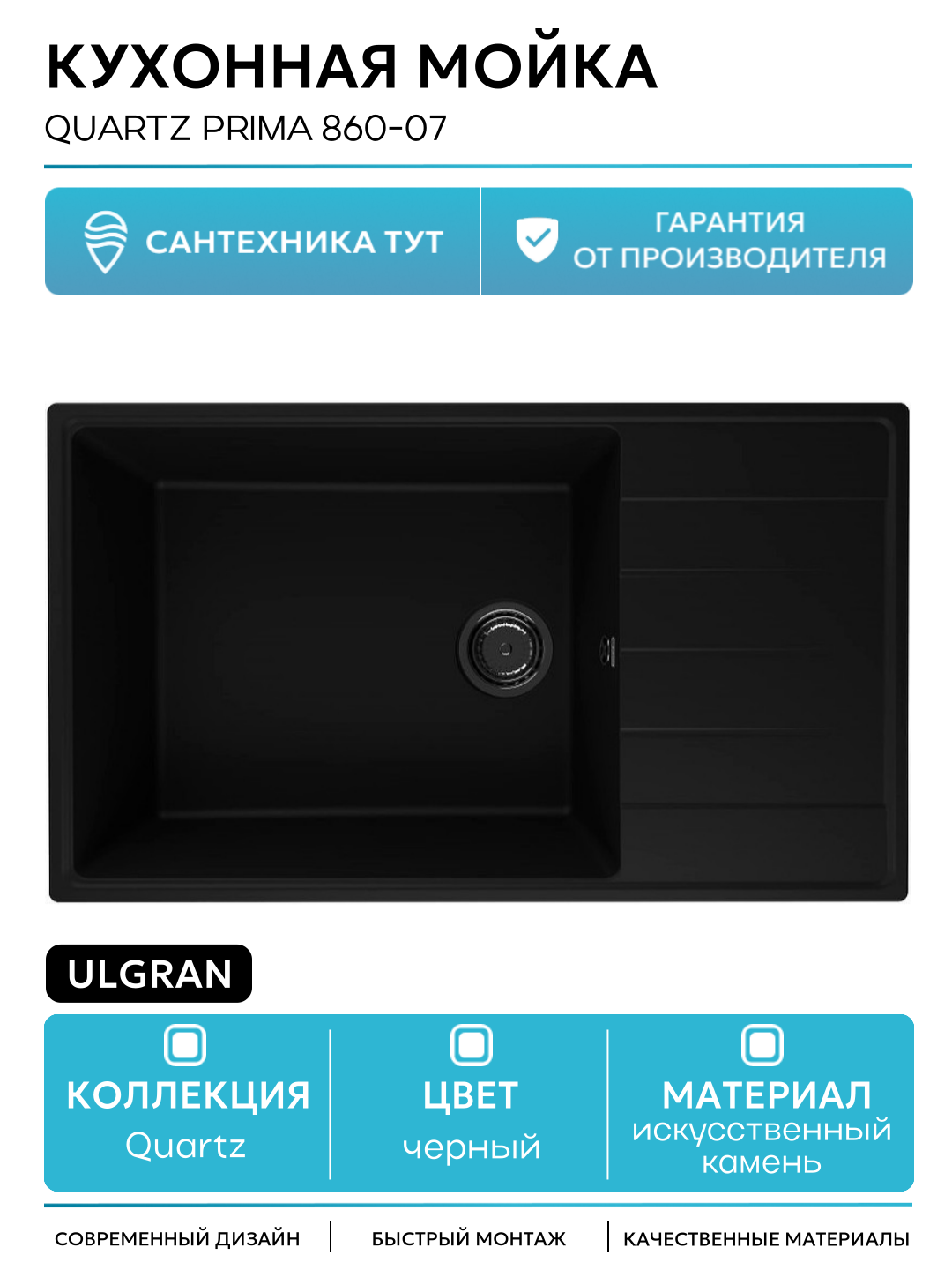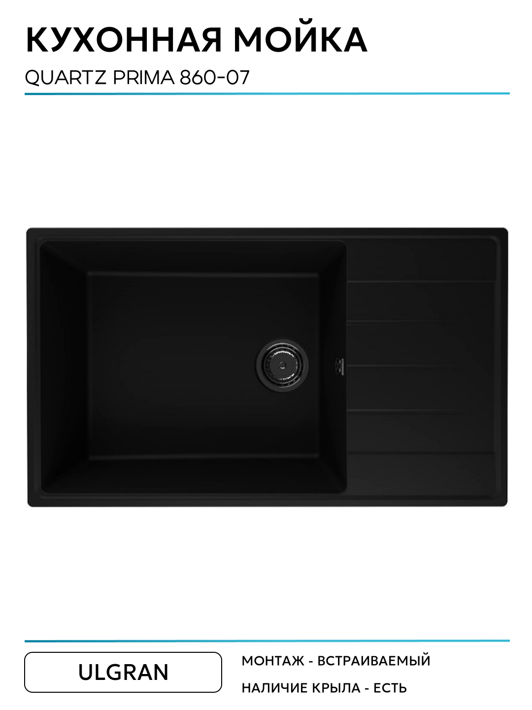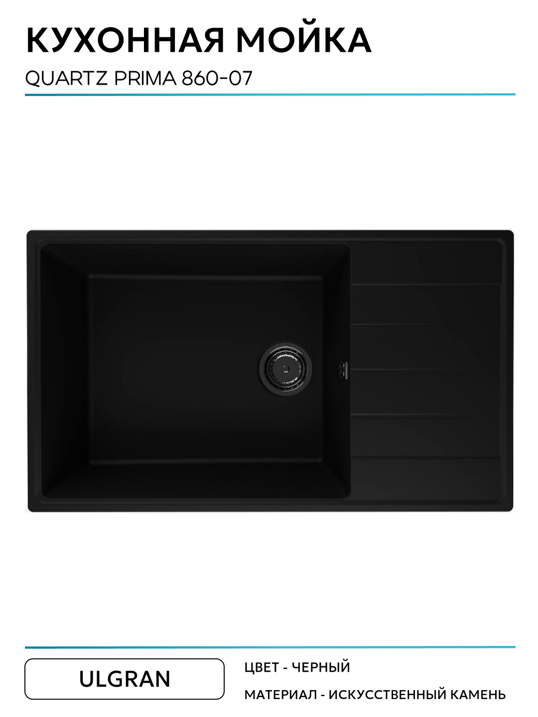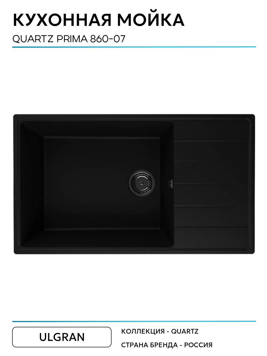 Кухонная мойка Ulgran Quartz Prima 860-07 Уголь искусственный камень встраиваемый 86 Россия: сравнение цен, характеристики, фото, актуальное наличие и цены.