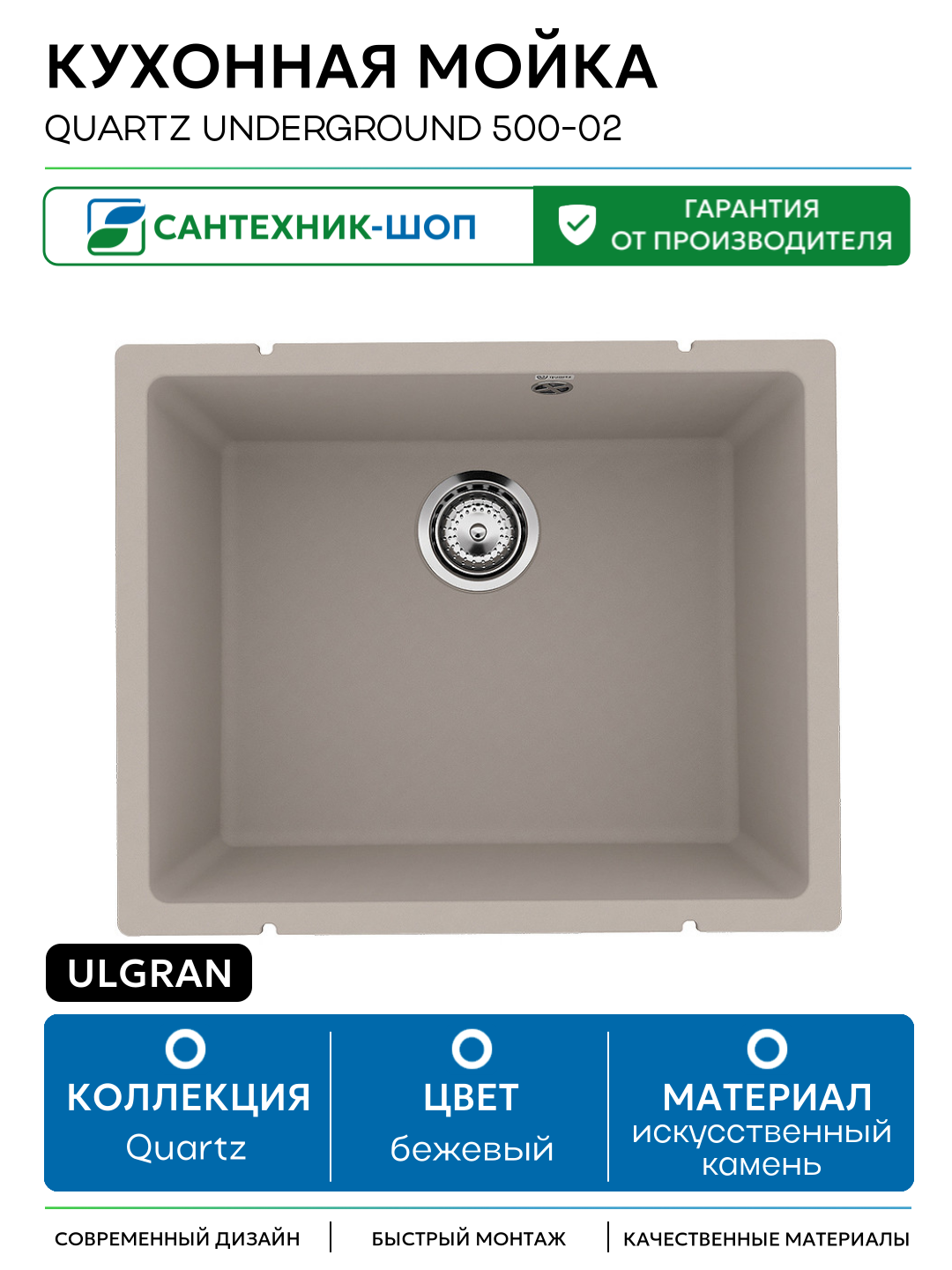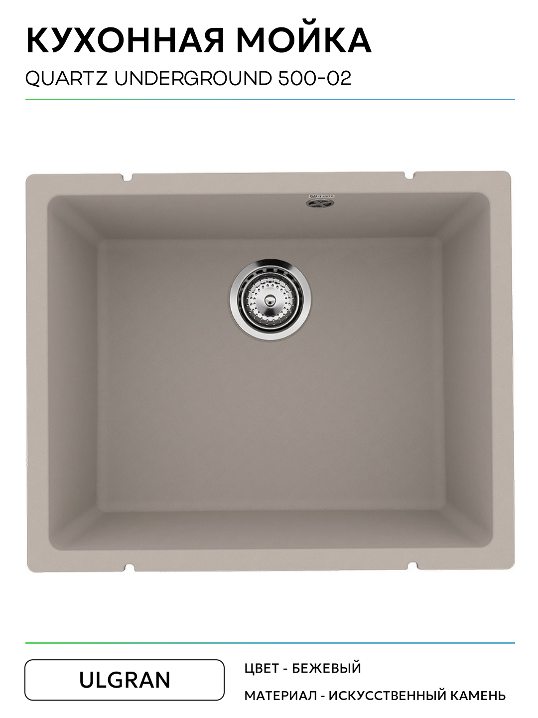 Кухонная мойка Ulgran Quartz Underground 500-02 Лен искусственный камень встраиваемый 55 Россия: сравнение цен, характеристики, фото, актуальное наличие и цены.