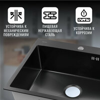 Купить Кухонная мойка «VANS» 600*505*200 мм Black DECOR с доставкой по всей России.