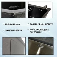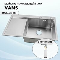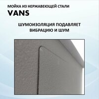 Кухонные мойки VANS, высокого качества, которое достигается за счет пищевой нержавеющей стали марки AISI304, разработанной по европейским стандартам качества, что позволяет быть продукту экологически чистым. Преимуществом данной кухонной мойки является толщ. металла чаши мойки 1мм. а верхняя часть 3мм. Данная конструкция позволяет установить мойку, как на столешницу, так и под нее. Мойки VANS по всему корпусу имеет шумопоглащающую обливку, что позволяет ей быть практически бесшумной. В комплектацию кухонной мойки входит дозатор в цвет мойки и высокотехнологичный сифон с отсеком для мусора. Раковина мойка для кухни – это важный предмет в вашей кухне. Раковина накладная для кухни проста в установке и эксплуатации. В комплекте с мойкой идет дозатор и сливная арматура.
