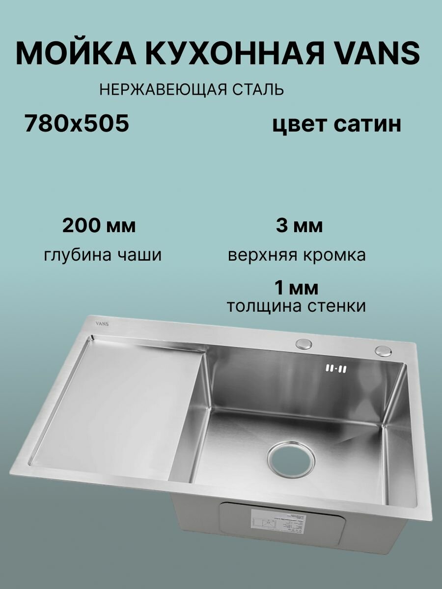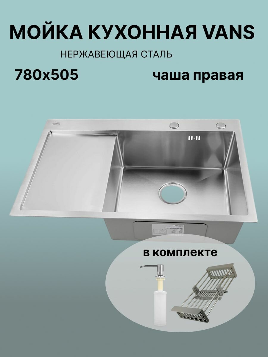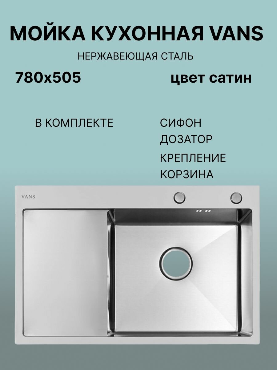 Купить Кухонная мойка VANS 780*505 Satin правая + Корзина с доставкой по всей России. Кухонная мойка VANS 780*505 Satin правая + Корзина: сравнение цен, характеристики, фото, актуальное наличие и цены.
