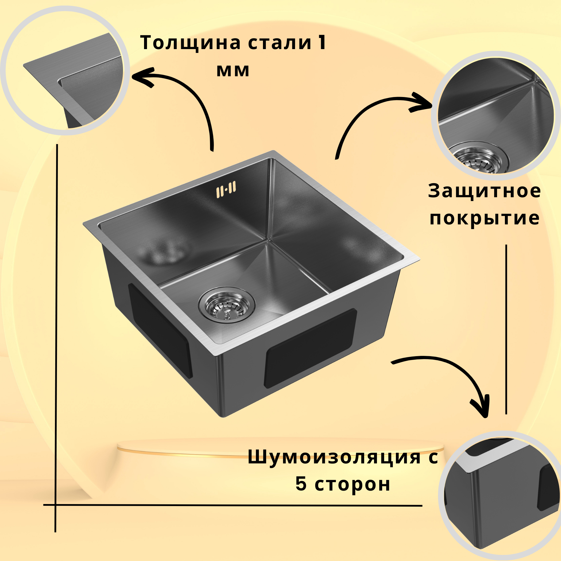 Мойка кухонная 4545 Satin 45х45 см сатин, нержавеющая сталь, квадратная, PVD покрытие: сравнение цен, характеристики, фото, актуальное наличие и цены.