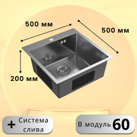 • Размеры чаши, 450 x 400 мм • Габаритные размеры мойки: 500 x 500 мм • Размеры чаши: 450 x 400 мм и глубина 200 мм