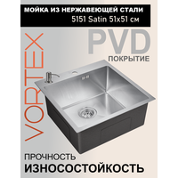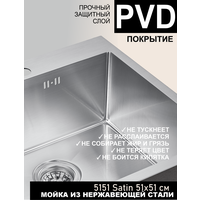Купить Мойка для кухни 5151 Satin 50х50 см сатин с дозатором, нержавеющая сталь, PVD-покрытие, квадратная с доставкой по всей России.