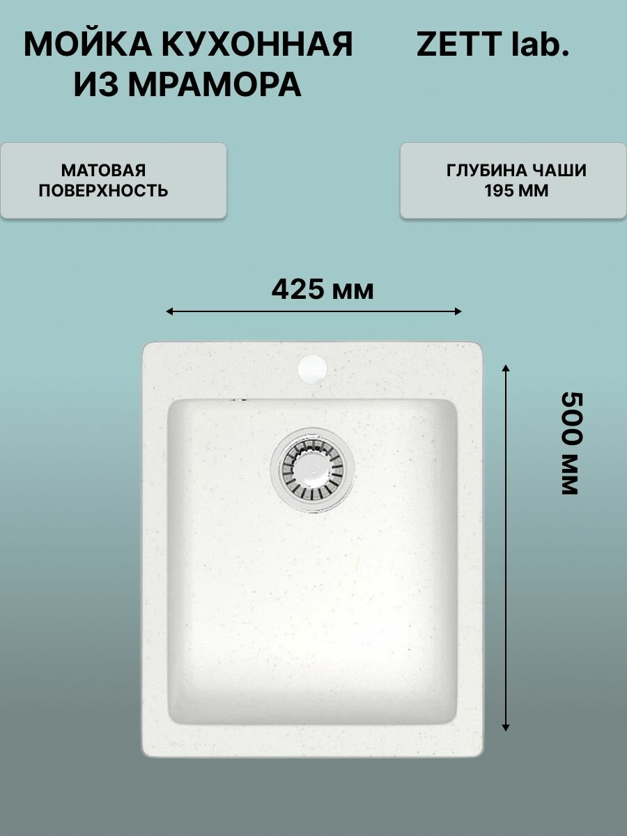 Купить Кухонная мойка ZETT lab модель 8 (425*500) Матовая G31 Белый с доставкой по всей России. Кухонная мойка ZETT lab модель 8 (425*500) Матовая G31 Белый: сравнение цен, характеристики, фото, актуальное наличие и цены.