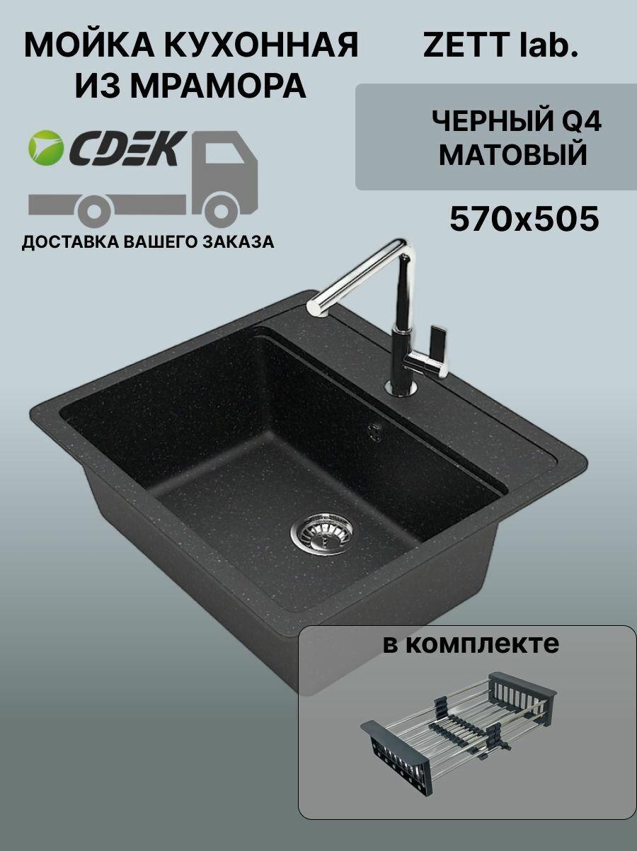Купить Кухонная мойка ZETT lab модель 9 (570*505) Матовая Q4 Черный + Корзина с доставкой по всей России. Кухонная мойка ZETT lab модель 9 (570*505) Матовая Q4 Черный + Корзина: сравнение цен, характеристики, фото, актуальное наличие и цены.