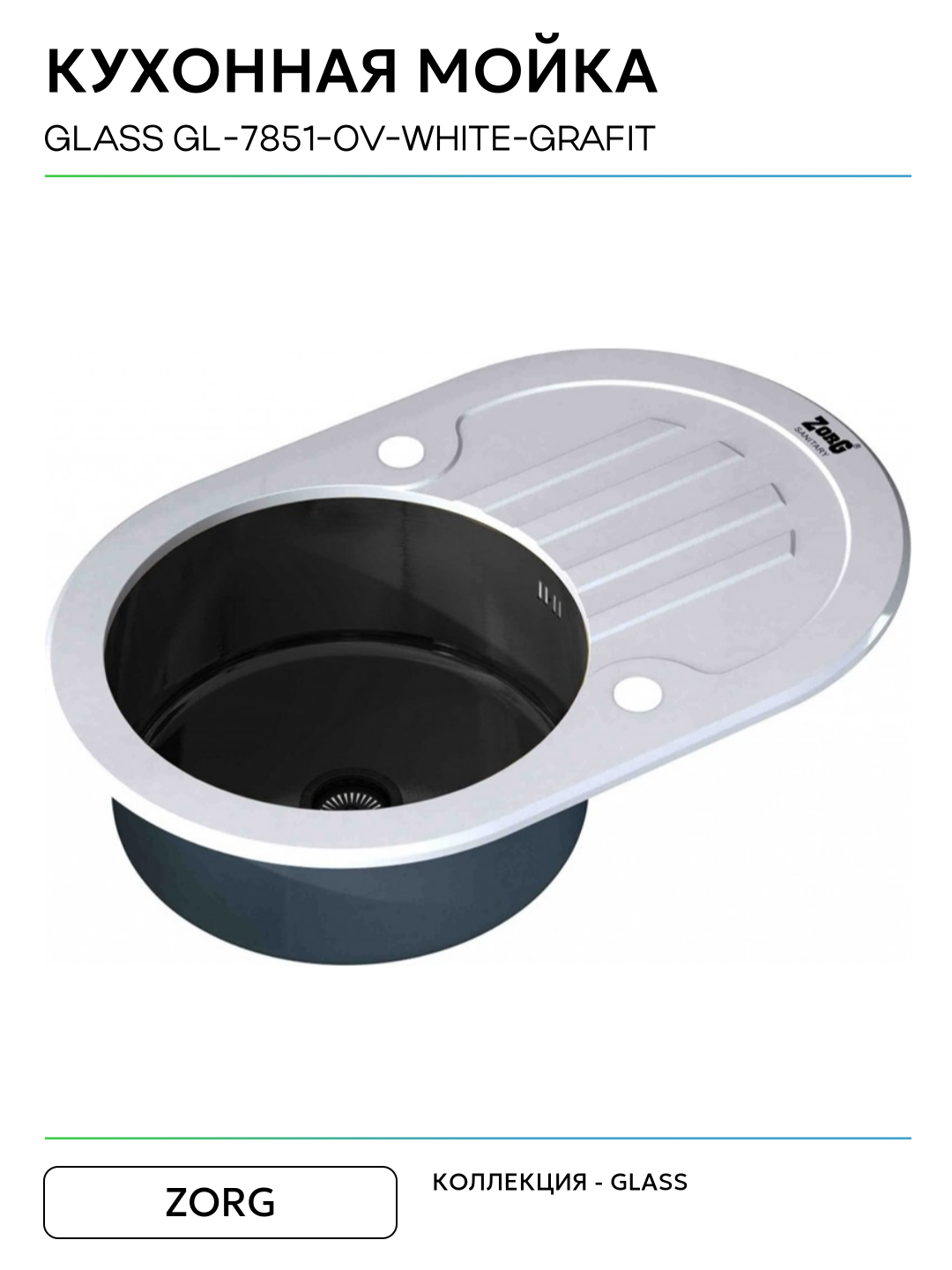 Купить Кухонная мойка ZorG Glass GL-7851-OV-WHITE-GRAFIT Белый / Графит нержавеющая сталь встраиваемый 78 с доставкой по всей России.
