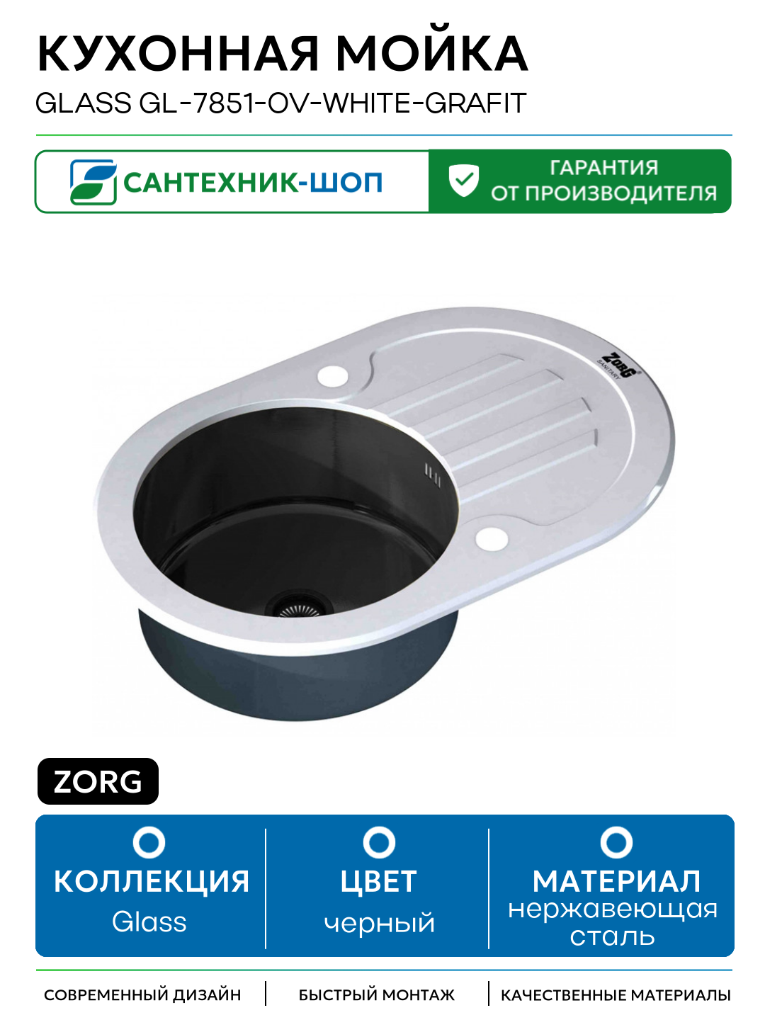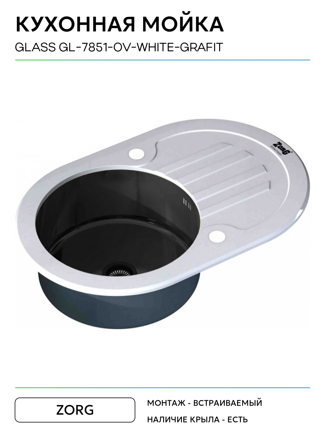 Кухонная мойка ZorG Glass GL-7851-OV-WHITE-GRAFIT Белый / Графит нержавеющая сталь встраиваемый 78: сравнение цен, характеристики, фото, актуальное наличие и цены.