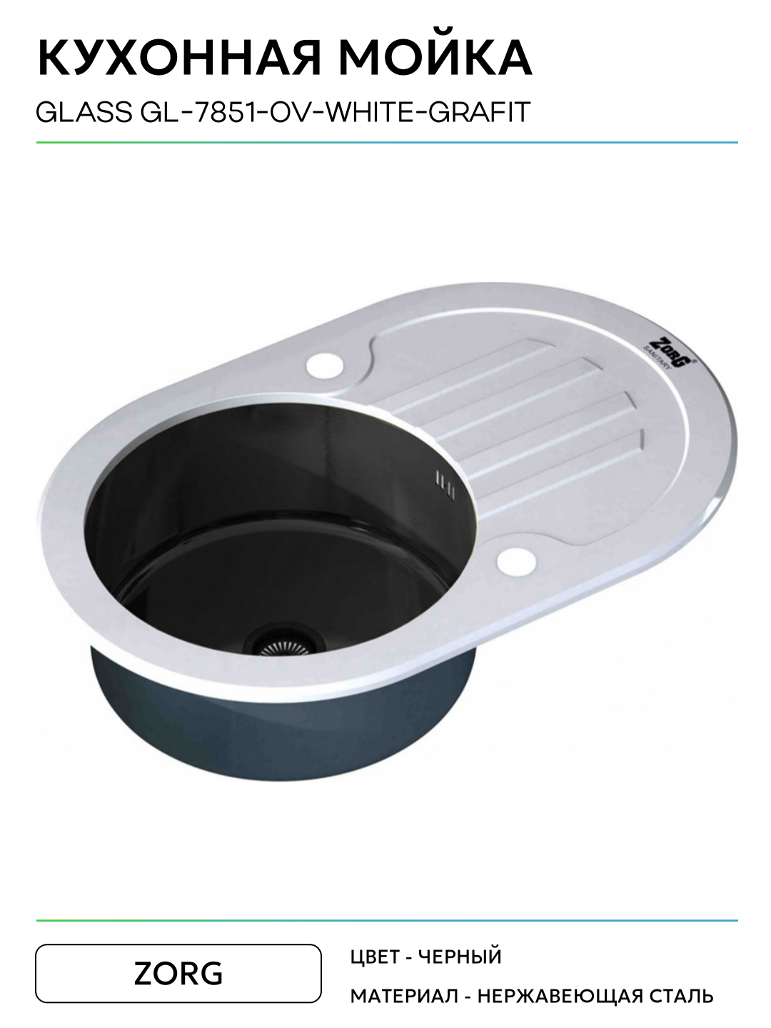 Кухонная мойка ZorG Glass GL-7851-OV-WHITE-GRAFIT Белый / Графит нержавеющая сталь встраиваемый 78