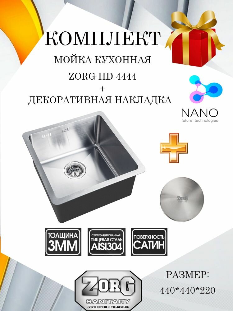 Купить Кухонная мойка ZorG HD 4444 в комплекте с накладкой на выпуск, толщина 1,5 мм, глубина 22 см с доставкой по всей России. Кухонная мойка ZorG HD 4444 в комплекте с накладкой на выпуск, толщина 1,5 мм, глубина 22 см: сравнение цен, характеристики, фото, актуальное наличие и цены.