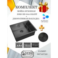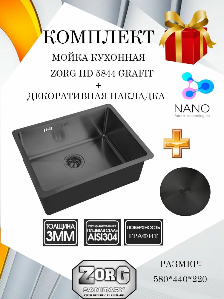Купить Кухонная мойка ZorG HD 5844 GRAFIT в комплекте с накладкой на выпуск, толщина 1,5 мм, глубина 22 см, цвет графит с доставкой по всей России. Кухонная мойка ZorG HD 5844 GRAFIT в комплекте с накладкой на выпуск, толщина 1,5 мм, глубина 22 см, цвет графит: сравнение цен, характеристики, фото, актуальное наличие и цены.