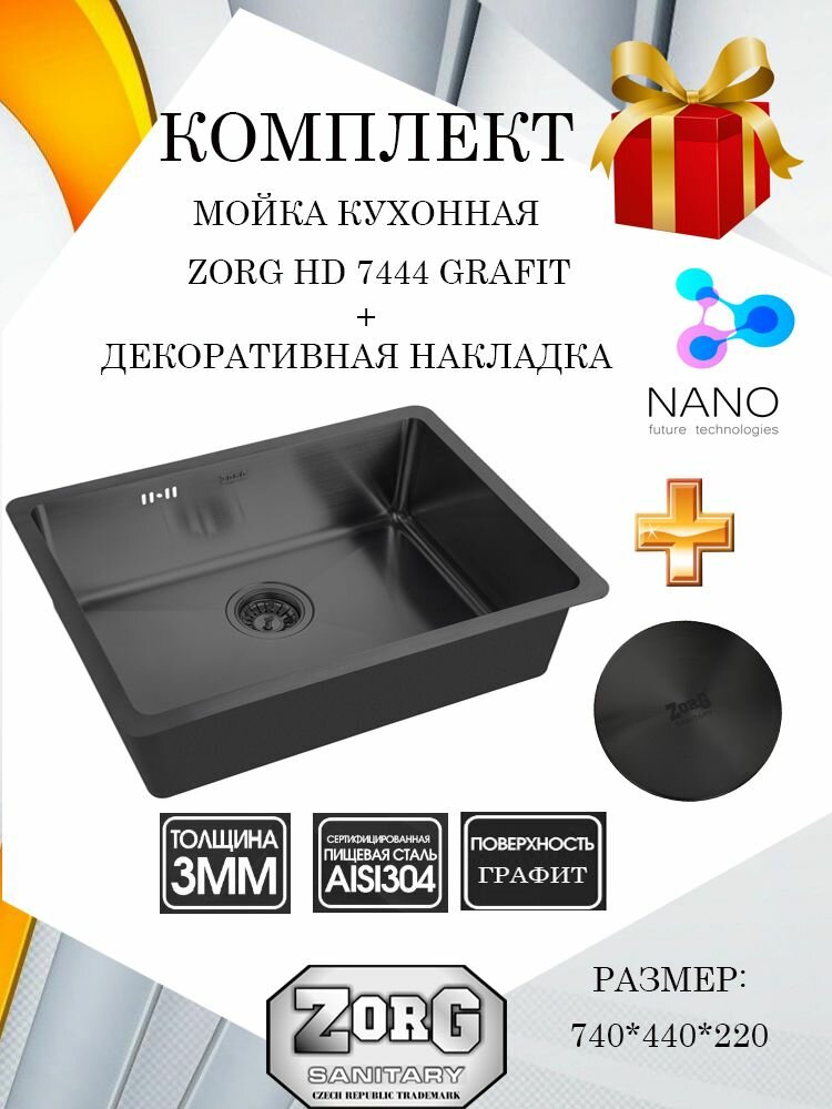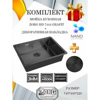Купить Кухонная мойка ZorG HD 7444 GRAFIT в комплекте с накладкой на выпуск, толщина 1,5 мм, глубина 22 см, цвет графит с доставкой по всей России. Кухонная мойка ZorG HD 7444 GRAFIT в комплекте с накладкой на выпуск, толщина 1,5 мм, глубина 22 см, цвет графит: сравнение цен, характеристики, фото, актуальное наличие и цены.